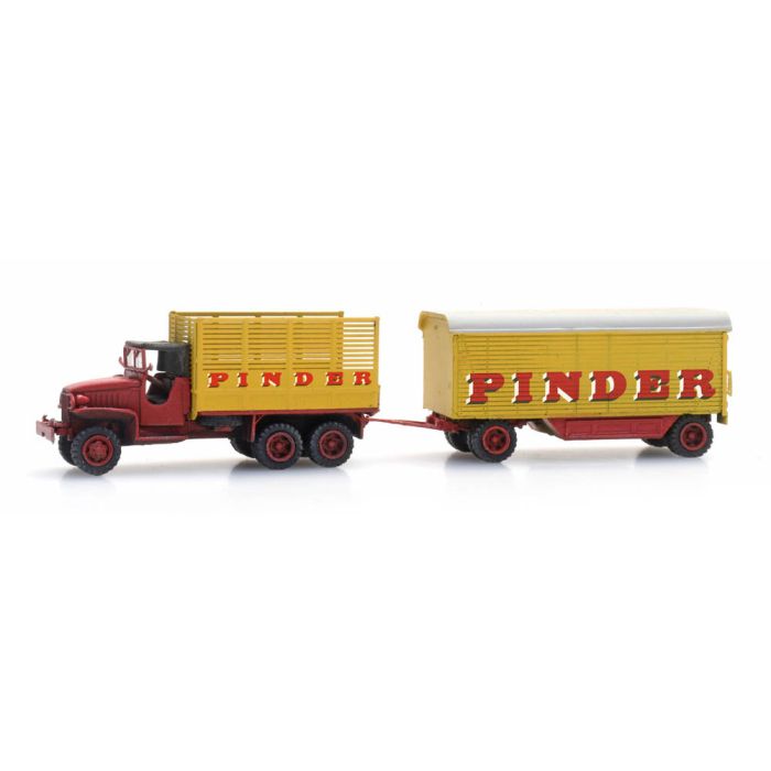 Artitec Pinder Zirkuswagen + GMC 353 - Fertigmodell aus Resin, lackiert - N / 1:160