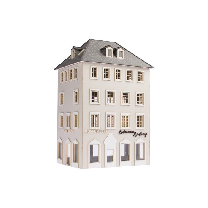 Unique Laser-Cut Bausätze - Stadthaus "Koffer Ecke Ludwig" - L: 113mm x B: 87mm x H: 190mm - H0 / 1:87 (01-04-001)